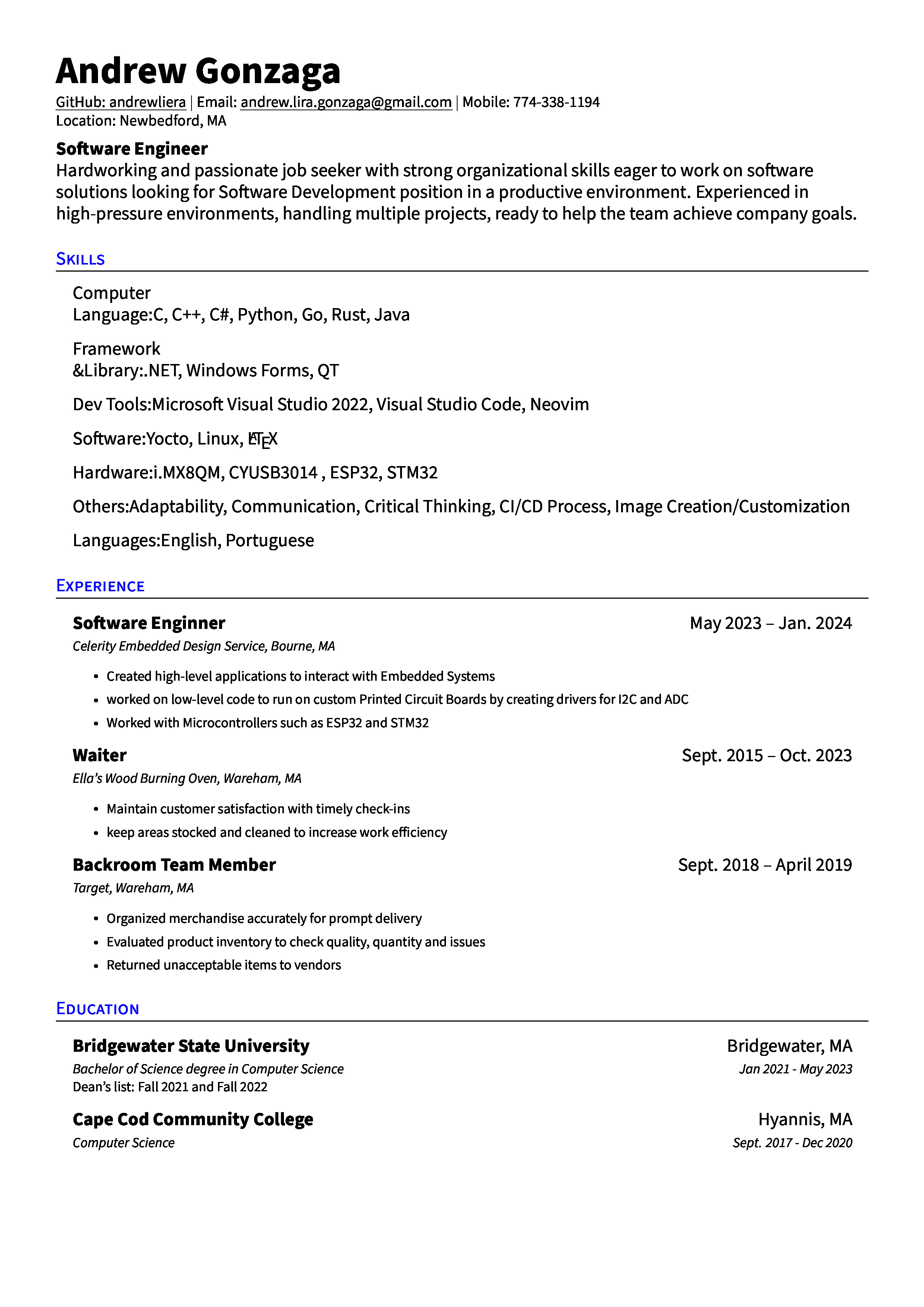 Proficient in C/C++, assembly, and optimized software solutions for resource-constrained environments.